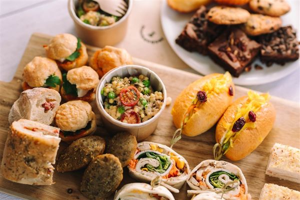 10 Gougères 10 Wrap wraps de guacamole, légumes croquants cheddar & batavia 10 Toast Veggie Cramberries, noix & crème de roquefort AOP 10 Avocado Toast 10 Mini burger Coleslaw 1 Grande Tarte Veggie Chèvre Miel Noix (48 Carrés) 15 Mini sandwich roulé Guacamole carottes oeufs salades 10 Mini salade : Mini penne au pesto. parmesan & tomates cerises 10 Verrine gourmande : mousse au chocolat au lait. framboises & éclats de chocolat noir 10 Petit cookie Chocolat au lait noisettes grillées 10 Brochette de fruit